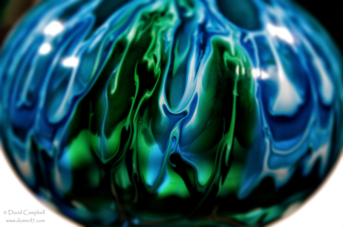 Today's photo subject is a vase that the wife and I got in Ruidoso, NM many years ago. It occurred to me while looking around for subject matter that it might make a cool photo because of its graceful curves, mixed with the overlaid textures of soft feathers and crackled glaze. I lit this one with a single, small softbox on the left-hand side of the photo, trying to emphasize depth and shape. You can see the reflection of the softbox on the vase. I added a bit of fill light by reflecting some of the light onto the other side of the vase using a piece of white cardboard.